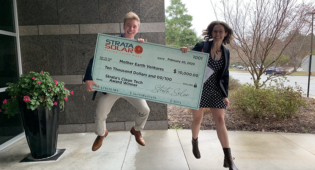DURHAM, NC – February 26, 2020 – Strata Solar has announced the team of Olivia Corriere and Zachary Walker as the winner of its Clean Tech Award Competition, which called on University students, faculty, and staff members to pitch a promising idea in clean technology for the chance to win $10,000 in prize money and the opportunity to launch their promising idea.